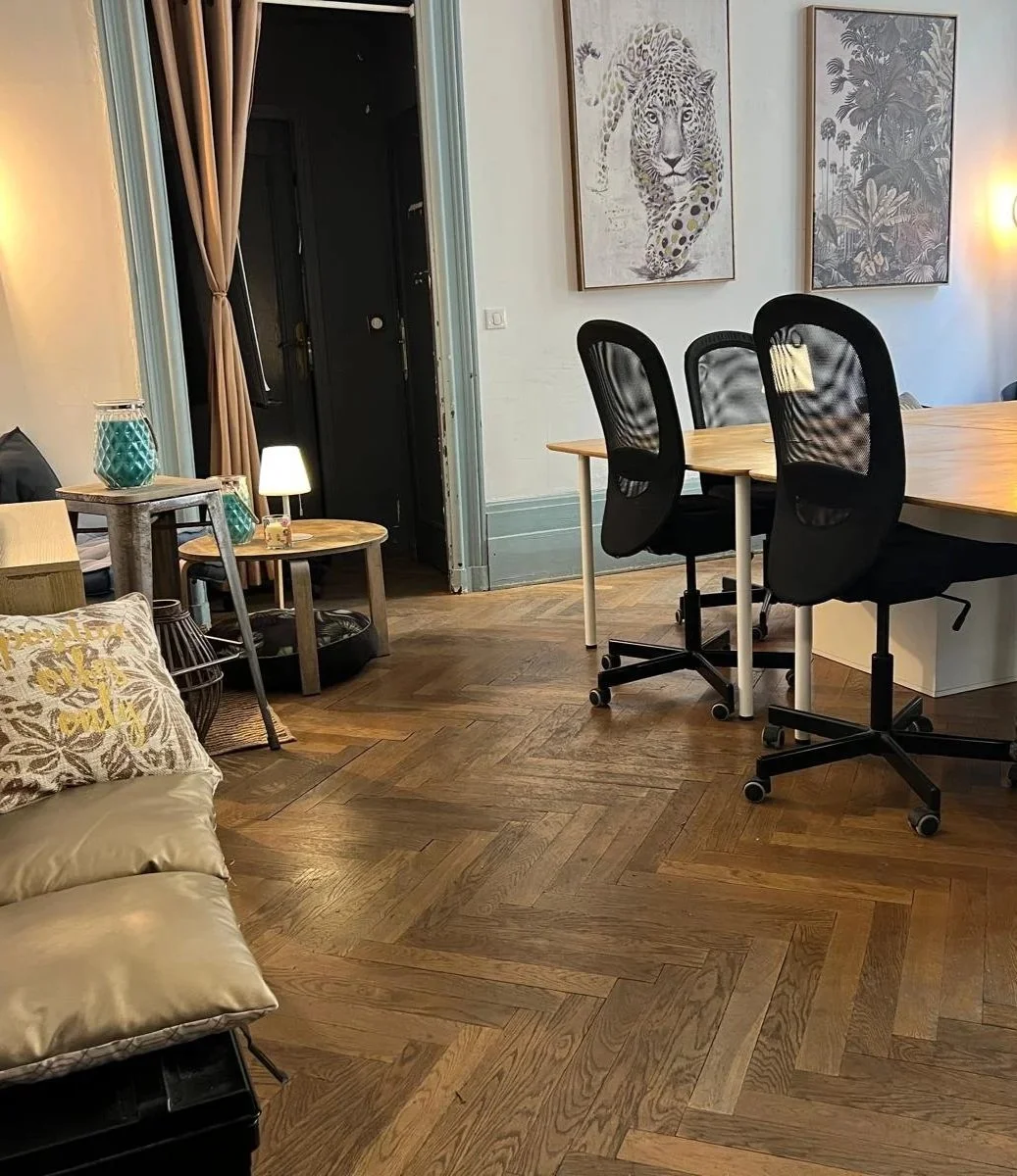 Equipée avec de belles et larges tables professionnelles, et connectée en Wi-fi haut débit.