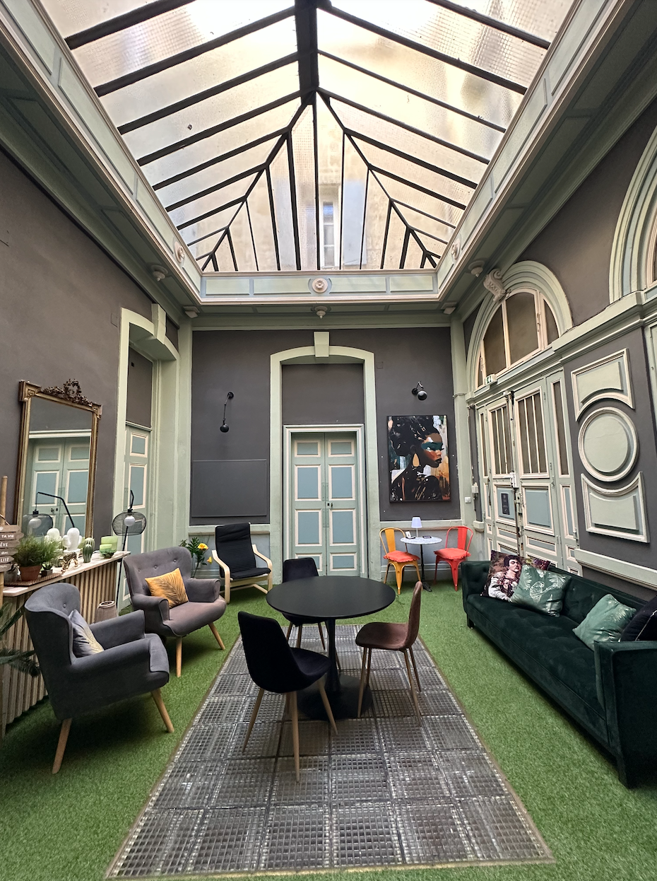 L’entrée du 23 Saint Guilhem est transformé en guinguette, tables rondes, espace cosy, pour les coworkers & leurs invités.